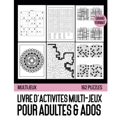 Livre d'activités multi jeux pour adultes & Ados: Cahier de vacances adultes, avec des jeux, énigmes et puzzles logiques se détendre, (Sudoku, Labyrinthes, Coloriage Mandala, Morpion)