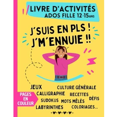 Livre d'activités pour Ados fille de 12 ans à 15 J'suis en PLS ! J'm'ennuie !! Pages couleur: Cahier jeux avec labyrinthes, mots mêlés, ... (Livre et activités ado)