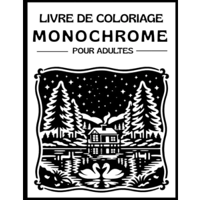 Livre de Coloriage Monochrome, pour Adultes,Nature et Créativité en Illustrations Noir Blanc