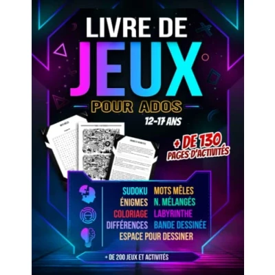 Livre de jeux pour ados 12 17 ans: Cahier d'activités avec plus 200 Enigmes Mots mêlés Sudoku Labyrinthes Différences Bande dessinée Coloriage Filles et Garçons