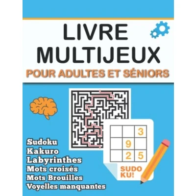 Livre Multijeux Pour Adultes et Séniors: Cahier d’activité avec plusieurs type de jeux logique mémoire…Sudoku, Labyrinthes, Mots croisés, ... manquantes, Brouilles Nurikabe