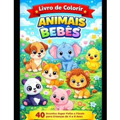 Livro de Colorir Animais Bebês para Crianças: 40 Desenhos Super Fofos e Fáceis Crianças 4 a 8 Anos