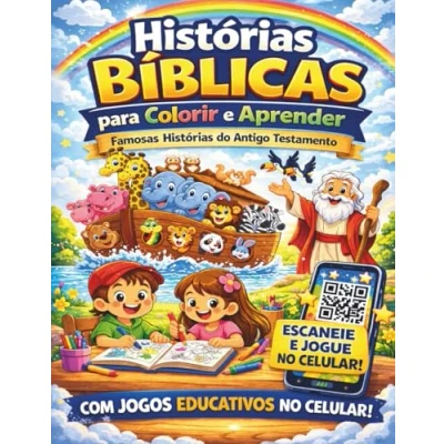 Livro de Colorir Bíblico Infantil com QR Code: Histórias do Antigo Testamento para e Jogos Educativos Bíblicos Via code