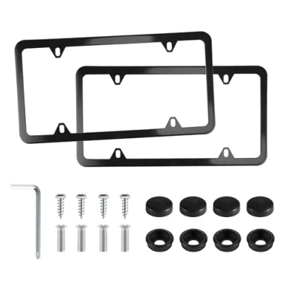 Product features: Surface painting process, improve texture, simple appearance, fine workmanship, smooth edge polishing without injuring the car and hands. Stainless steel material: The stainless steel is treated with a 1.2mm thick powder coating to provide long-term protection against corrosion, rust, and aging. Installation: The 4-hole license plate frame is suitable for your car, truck and all types of trailers. Four (4) fasteners are required to secure the license plate and frame protector, which can better protect the license plate from deformation. Some cars have only 2 holes, so be sure to check the vehicle before ordering. Hardware included: 2 pcs License plate frames, with 12 Screw Caps (plastic), 12 Machine Screws, 12 Washers (plastic), 4 Self-tapping Screws, 1 Screwdriver. Frame size: 12.3 "x 6.3", internal dimensions: 11.4 "x5.3 ". Purchase with Confidence: Any issues or questions please feel free to contact us, we are always here to satisfy all of you.