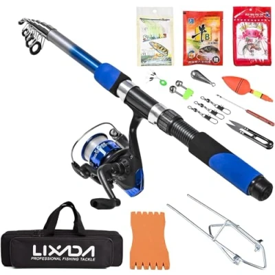 Lixada Combo Telescopic Fishing Rod+Fishing Reel Spinning Combo+Fishing Bag+Bait+Fishing Accessories
