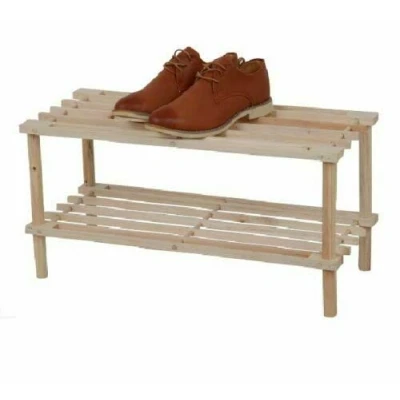 LIZZIE JACOBS New 2 Tier Wooden Shoe Rack Easy Build Large Storage Capacity Trainer Stand and Organiser Ideal for Hallway Bedroom or Small Spaces (2 Tier)
