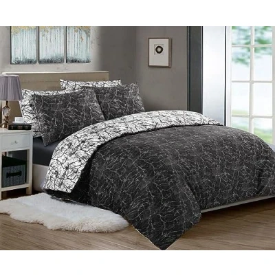 LIZZIE JACOBS New 200 Thread Count 100% Cotton Super Soft Duvet Cover Sets Reversible Printed Quilt Bedding (Super King, Marble Black/Charcoal)