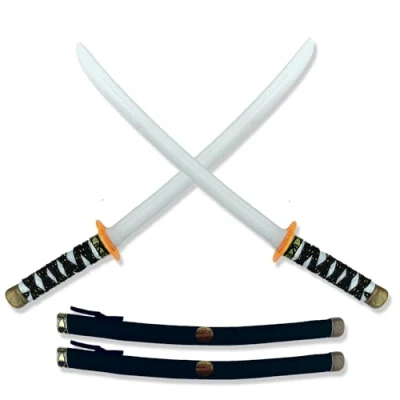Lizzy 2 x Ninja Katana Sword and Scabbard (55cm) Reusable plastic Kids Warrior Samurai Toy fancy dress outfit accessory Cosplay Model (Black 2)