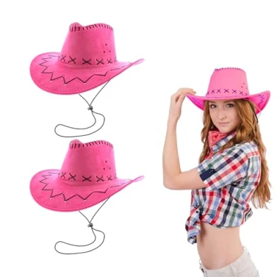 Lizzy 2 x Pink Men Women Cowboy Hat Adult Wild West Western Sheriff Birthday Halloween Cow Girl Hats Costume for Fancy Dress Bachelor Party Accessories