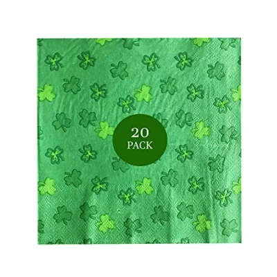 Celebrate in Style; 20 St Patricks Day paper napkins add festive flair to parties; perfect for themed gatherings or family dinners; bring a touch of luck to your table with vibrant clover designs Effortless Clean-Up; Two-ply food grade paper ensures absorbency for spills and messes; ideal when hosting large groups or serving snacks; enjoy entertaining with every use Generous Size; Each napkin measures 33 x 33 cm unfolded, offering ample coverage; suitable for picnics, barbecues, or buffets; keeps hands and surfaces tidy during celebrations Versatile Occasion Ready; Designed for St Patricks Day but suitable for outdoor dining, picnics, and barbecues; complements any event where convenience and charm are needed Safe and Practical; Made from food grade paper for peace of mind at mealtimes; suitable for use around children and adults alike; a practical choice for every party setting