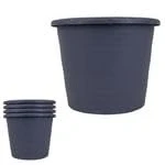 Lizzy 4pc Round Reusable Plastic Plant Pot Pots for Indoor Outdoor Flower Pots, Heavy Duty and Stylish Plants with Drainage Holes (Grey, 24cm)