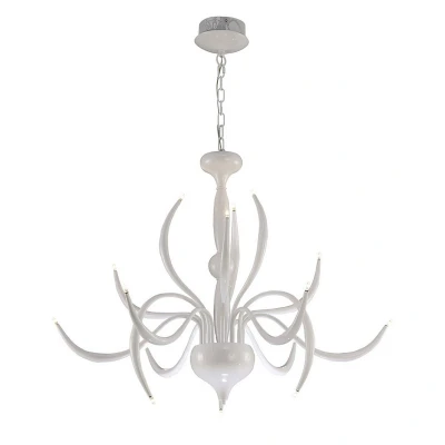 A superior design orientated range of fittings that create a fantastic impact. The handcrafted metal arms not only vary in diameter from start to finish but then also curve to create an iconic collection. The White gloss finish creates a reflective surface thus multiplying the sparkle from the halogen lamps. The 9 light ceiling fitting has been especially developed for lower ceilings.