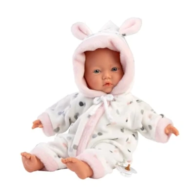 The cuddly Irena is a 31 cm baby doll with blue eyes and soft body. Head, arms and legs are made of delicate vinyl. The soft body doll is handmade and made in Spain. Quality and product safety are the focus of the dollmaker family. Llorens. The soft body dolls are refined and carefully crafted down to the smallest detail. The expressive faces give each doll its own personality. Love and care in manufacturing is also evident in clothing and accessories. These are made from real wool and fine fabrics. The doll comes with a cuddly jumpsuit with fluffy ears and a dummy in a high-quality gift box, which makes it the ideal gift for different occasions, such as Christmas, Easter or birthday., Manufacturer: Llorens