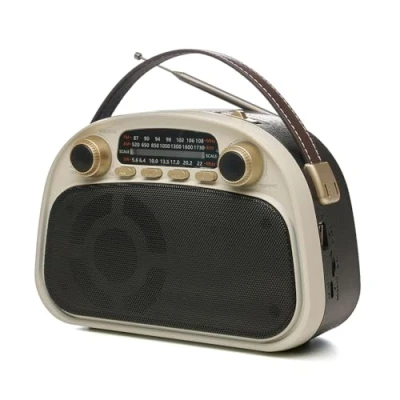 WAVEBANDS: Listen to your favourite Medium Wave (AM / MW), Short Wave (SW) or FM radio stations. MUSIC STREAM: This radio plays music files by MusicStream (which is Bluetooth BT compatible) source such as Mobile Phone. This can be music streaming sources such as Spotify, Apple Music, Deezer etc or music stored directly on your phone. USB & SD CARD: Play MP3 tunes using the USB slot or MicroSD (TF) card with full control of playback, pause, next song, previous song etc RETRO DESIGN - The beautifully designed cabinet has a fantastic retro look whilst providing modern ways to listen to your favourite music. USB RECHARGEABLE: The lithium ion rechargeable battery provides upto 8 hrs playtime on a single charge. Charge using a normal USB 5v power source (USB adaptor not included)