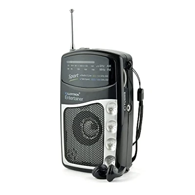 CLASSIC DESIGN: The classic design has a nostalgic feel, yet still features the modern essentials such as an earphone socket and access to the latest AM/FM radio stations. The compact size, complete with telescopic swivel antenna, offers a retro personal radio great to carry with you along on a trip or while you?re out and about. EASY TO USE: The simple design allows for easy set-up and operation, suitable for all to enjoy. Tune into your favourite AM and FM stations by searching on the tuner for different frequencies and watching the tuning window. Rotate the rotary dial to search between stations and the smaller dial on the opposite side to adjust the volume level. SPEAKER OR EARPHONES: This radio has an earphone socket and comes complete with a pair of stereo earphones. Use the built-in speaker to enjoy listening or alternatively plug in the included earphones for private listening. PORTABLE WITH CARRY STRAP: The LLOYTRON "Entertainer" 2 Band Personal Sports Radio is small and light enough to carry with you, making it ideal for travelling, camping trips, walking, fishing and more. Extend the telescopic antenna for better reception of radio signals. BATTERY OPERATED: To power, simply insert 2 x AA batteries (not included). Use your personal sports radio wirelessly without the need to plug in or recharge.