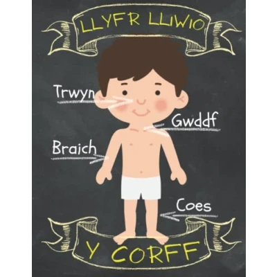 Llyfr lliwio y corff The body colouring book: Bilingual English and Welsh language educational book for children home schooling