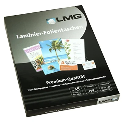 LMG premium laminating pouches with glossy surface and brilliant colour results Pack of 100 laminating pouches, 154 x 216 mm, 2 x 125 microns Suitable for all laminators with hot lamination and the corresponding film thickness 100% waterproof, extremely tear-resistant and very stable High quality – our laminating pouches stand for the best quality and results!