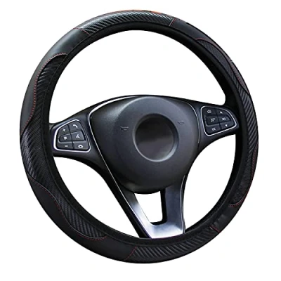 【Premium Material】This protective cover is made of environmentally friendly and durable carbon fiber leather. It is wear-resistant, non-slip and breathable 【Universal Size】The car steering wheel cover fits for the most middle-size steering wheels with diameter of 37-39cm/14.5-15inches. It is universal for round and D-shaped steering wheels 【Splicing Design】The universal steering wheel cover brings vibrant color in your car. Not only does this item protect it also enhance the look of your vehicles interior. It is easy to install and stable 【Full Protection】Car Steering Wheel Cover protects your steering wheel from scratches, fading and wear.It brings you a great touch and comfortable feel, massages your palm, relieves driving fatigue and enriches your driving experience 【Quality Guarantee】Steering wheel cover fits 98% of car models. We promise providing a 12-month warranty for quality-related issues of this leather steering wheel cover, please feel free to contact us if you have any questions