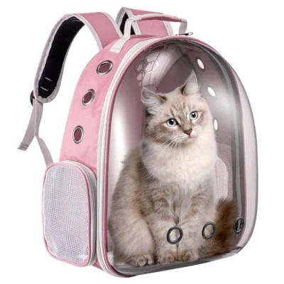 LN COZY CORNER Transparent Bubble Cat Backpack Space Capsule Pet Carrier with Hard‑Shell Dome, Breathable Mesh & Padded Straps Hands‑Free Travel Bag (Pink)