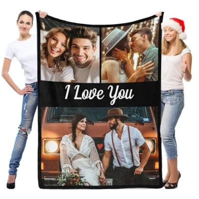LNM Personalised Christmas Photo Gifts for Dad, Blanket with Photo, Customised Adults, Custom Blanket, Birthday Dad