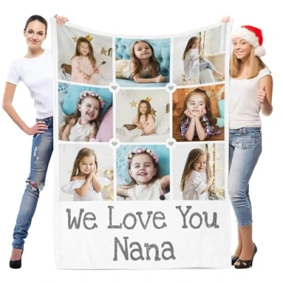 LNM Personalised Christmas Photo Gifts for Girls/Boys, Blankets Baby/Kid, Customised with Pictures, Custom Blankets, Customise Blanket