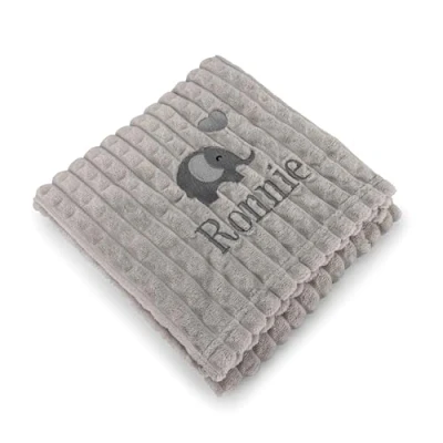 Lobeko Personalised Baby Blanket Embroidered with Name & Elephant Design Soft Customised for Newborn Girl Cot Pram Present 100x75cm (Pink, Blue, White) (Grey)