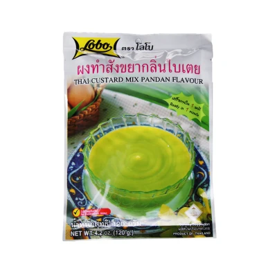 Lobo Thai Custard Mix Pandan Flavour 120g lets you easily prepare creamy Thai-style pandan custard at home. Just add water, cook, and chill for an authentic, fragrant coconut dessert with vibrant green colour—perfect served with sticky rice or on its own.