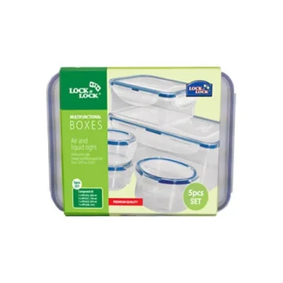 This useful multi-functional set contains 1 x HPL826 2.6L rectangular, 1 x HPL823 870ml square, 1 x HPL932 300ml round and 2 x HPL931 100ml round containers.LocknLock's clever patented system uses four individual locking hinges and a silicone seal to make them 100% air and watertight.Perfect for storing food in the fridge or freezer or transporting between home and work.A large range of styles and sizes are available to choose from.BPA free.Freezer & dishwasher safe.Microwave safe (reheating only).