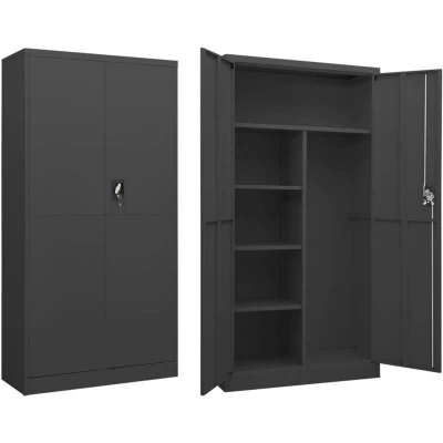 VidaXLThis locker cabinet has an iconic, industrial design, which will make a great decorative addition to any room or office space. With 4 shelves, this storage organiser has ample storage space even for long or tall items like clothing, brooms and vacuum cleaner tubes, fishing rods etc. It can be used as a wardrobe, filing cabinet or storage space for sports equipment or cleaning supplies. This storage cabinet is made of steel, making it durable as well as easy to clean.