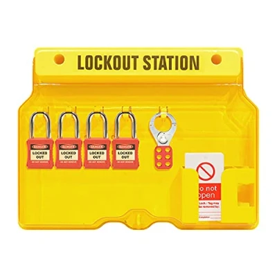 Lockout Tagout Station Board Filled Yellow 4 x Padlocks 1 25mm Hasp 10 Do Not Operate Tags Supplied With Cover