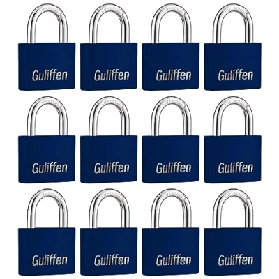 Lightweight and strong: The aluminum construction of these lock and key makes them lightweight and easy to handle, while also providing a high level of security. Specifications: 1-9/16 in. (40 mm) wide lock body; 1/4 in. (6 mm) diameter shackle with 7/8 in. (22 mm) length, 13/16 in. (21 mm) width. Security: locker lock with key is constructed with a blue vinyl-covered aluminum body for scratch and corrosion resistance, hardened steel shackle for cut resistance. Versatile: These key lock can be used to secure a wide range of items, such as lockers, toolboxes, gates, and sheds. Packaging: Each set contains twelve blue keyed alike padlocks, but the keys are different between sets., Weight: 2.1164377152 pounds, Manufacturer: Guliffen