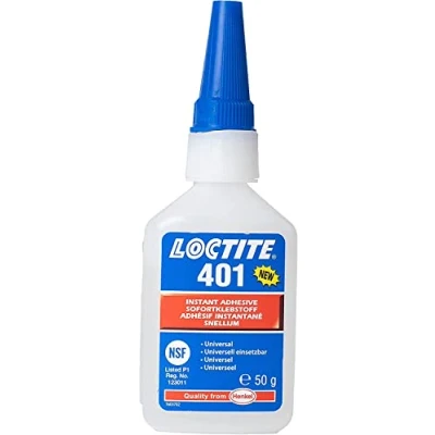 Quick repairs - The instant adhesive can be used on materials including metal, plastics, elastomers and for porous materials such as wood, paper, leather or textiles Demanding bonding - The strong super glue adhesive is also suitable for applications requiring uniform stress distribution or high tensile and shear strength Emergency repairs - The strong liquid glue is ideal for quick emergency repairs. The superglue bonds plastics, metals and a wide variety of material combinations Clean application - As the instant adhesive is a single component, no mixing is necessary for application. After application, it cures quickly at room temperature Package contents - LOCTITE 401, fast curing instant adhesive, based on cyanoacrylate, ideal for small emergency repairs, universal adhesive for many materials, Transparent, 50g, Weight: 0.110231131 Pounds, Manufacturer: Henkel