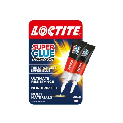 General description Loctite Super Glue Power Gel is a high-quality adhesive formulated with a cyanoacrylate rubber-infused gel formula. This instant glue provides powerful and precise bonds, making it ideal for various materials, including wood, rubber, plastic, and leather. It is particularly effective on vertical surfaces and materials requiring flexibility, ensuring durability while drying transparently. Technical specifications Type: Gel adhesive in tubes Quantity: 2 x 3g tubes Features: Shock-resistant, waterproof, heatproof, transparent drying Material compatibility: Suitable for wood, rubber, plastic (excluding polyethylene and polypropylene), and leather Compatibility and accessories Not suitable for polyethylene (PE), polypropylene (PP), vehicle glass, Styropor, or synthetic fibers. Installation Ensure surfaces are clean, dry, and close-fitting before application. Remove the cap and apply a small amount of glue to one surface. Press surfaces together immediately and hold