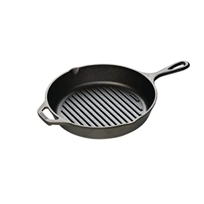 Perfect for grilling steak, chicken and burgers Features a ribbed bottom - allows fat to drain away/creates desirable grill marks Two subtle side lips enable simple and mess-free pouring Pre-seasoned at Lodge's foundry for a natural, easy-release finish that improves with use Unparalled distribution and retention of heat ensures rapid and efficient cooking Suitable for use on induction, ceramic, electric and gas cooktops, as well as in the oven, on the stove, in the grill and on barbecues/campfires Extremely versatile - can be used to sear, fry, sauté, grill, roast, bake, braise and broil (both indoors or out) Compatible with metal, wood and silicone utensils Clean via hand washing (Lodge cast iron is sterile at 212 degrees Fahrenheit/100 degrees Celsius, so detergents are optional) Brutally tough - can last for over 100 years if care and use instructions (included with item) are followed Lifetime guarantee (full details below)