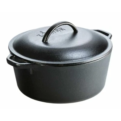 Measures 10-1/4-inch in diameter and 4-inch deep; lifetime warranty Self-basting domed lid preserves moisture; loop handles aid in carrying Pre-seasoned with vegetable oil formula and ready for immediate use Rugged cast-iron construction heats slowly and evenly 5-Quart Dutch oven with cast-iron lid ideal for slow-cooking foods Included Components: Dutch Oven With Dual Handles