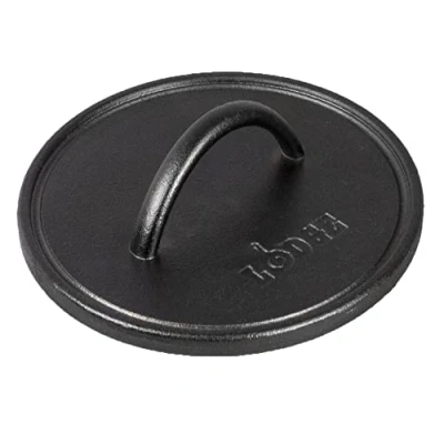 Lock in plate-licking flavor with the Lodge 8 Inch Seasoned Cast Iron Round Grill Press Cook the perfect grilled cheese, keep your bacon flat, or sear a steak Seasoned with 100% natural vegetable oil Cast Iron is unparalleled heat retention and even heating Made in the USA, Manufacturer: Lodge