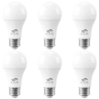 LOEODO E27 LED Screw Bulbs 100W Equivalent, 13W Light Bulb, 1200 Lumens, 2700K Warm White, Large Non Dimmable, Pack of 6