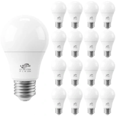 LOEODO E27 LED Screw Bulbs 60W Equivalent, 9W, 806 Lumens, 2700K Warm White, Large Bulb, Non Dimmable, Pack of 16