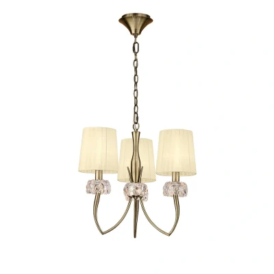 Loewe Ceiling Pendant 3 Light E14, Antique Brass with Cream Shades