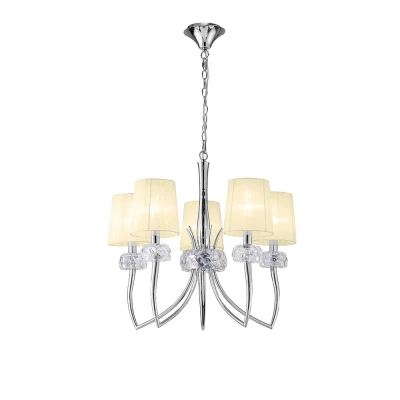 Elevate your interior with the Loewe Pendant, featuring five E14 lights. Its polished chrome finish and cream shades create a modern look, ideal for illuminating dining areas or living spaces.