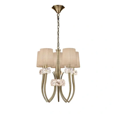 Designed in antique brass with soft bronze shades, the Loewe Slim Pendant features five E14 lights. This stylish fixture brings warmth and elegance to your indoor spaces.
