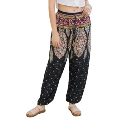 Elegant Style - Embrace a boho-chic vibe with our Women's Loose Bohemian Rayon Pants, designed from 100% Rayon for a breathable and flowy feel. Available in multiple prints and colors, offering a variety of vibrant options to match any top. Comfy Clothing - Discover comfort and cute style with our Women's Lightweight Hippie Harem Pants. Designed to fit One size (XS-XL), these pants offer a relaxed and flexible fit for all body types. The lightweight fabric ensures breathability and ease of movement. Trendy Trousers - Our woman's Indian trouser features long leg with drawstring and elastic waist, these bottoms adapt to every move, providing a customized fit that flatters your figure. The elastic around the ankle adds a touch of modern flair while ensuring a snug. All Day Wear - Our Versatile Relaxed Fit Pants are perfect for all occasions, from yoga, travel, and lounging to casual wear. The soft and breathable fabric provides all-day comfortable feeling, while the stylish design ensures you look chic and chill. Super Easy Care - For the best care, hand wash is recommended and hanging to dry to retain their silky smooth feel. Do not bleach to protect the vibrant colors and delicate fabric. These pants are a must-have for any boho lover.