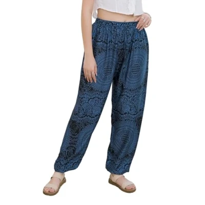 Elegant Style - Embrace a boho-chic vibe with our Women's Loose Bohemian Rayon Pants, designed from 100% Rayon for a breathable and flowy feel. Available in multiple prints and colors, offering a variety of vibrant options to match any top. Comfy Clothing - Discover comfort and cute style with our Women's Lightweight Hippie Harem Pants. Designed to fit One size (XS-XL), these pants offer a relaxed and flexible fit for all body types. The lightweight fabric ensures breathability and ease of movement. Trendy Trousers - Our woman's Indian trouser features long leg with drawstring and elastic waist, these bottoms adapt to every move, providing a customized fit that flatters your figure. The elastic around the ankle adds a touch of modern flair while ensuring a snug. All Day Wear - Our Versatile Relaxed Fit Pants are perfect for all occasions, from yoga, travel, and lounging to casual wear. The soft and breathable fabric provides all-day comfortable feeling, while the stylish design ensures you look chic and chill. Super Easy Care - For the best care, hand wash is recommended and hanging to dry to retain their silky smooth feel. Do not bleach to protect the vibrant colors and delicate fabric. These pants are a must-have for any boho lover.