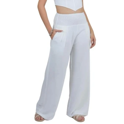 Versatile Style - These woman stylish high waisted pants are available in a wide range of sizes, from S to 2XL. Whether you're looking for petite or plus sizes, we have you covered. Comfortable Fit - Our comfy baggy pants clothing is made from a blend of 70% Rayon and 30% Linen fabric, these loose harem clothes provide the perfect balance of softness, breathability, and durability. Trendy Outfits - Experience chic trouser style with our smocked linen rayon Pants. The wide-legged with 2 side pockets design offers a trendy and relaxed fit that is both flattering and comfortable. Perfect Choice - Designed to be versatile, these woman lightweight pants are suitable for a variety of occasions. Whether you're practicing yoga, embarking on a travel, attending work meetings, or simply going about your daily routine. Easy care Instructions - Maintain the pristine look of these pants effortlessly. Simply machine wash them in cold water and hang them to dry. To ensure the perfect fit, please refer to our size chart.