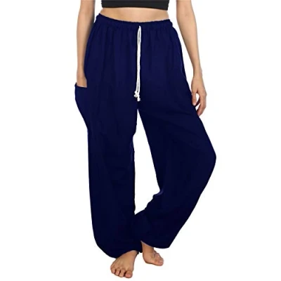 Lofbaz Women's Drawstring Harem Solid Bohemian Hippie Rayon Pants Dark Blue XL