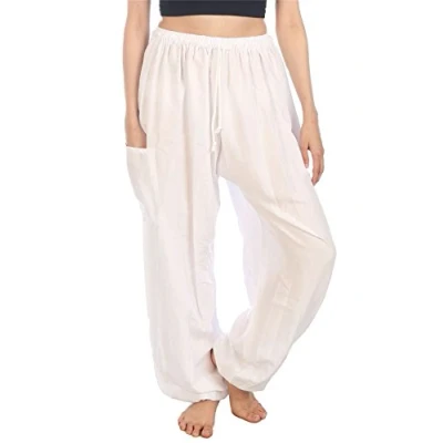 Lofbaz Women's Drawstring Harem Solid Bohemian Hippie Rayon Pants White 3XL