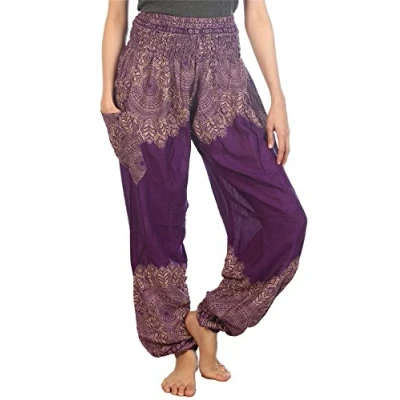 Lofbaz Women's Floral Smocked Waist Harem Pants Purple Size 3XL