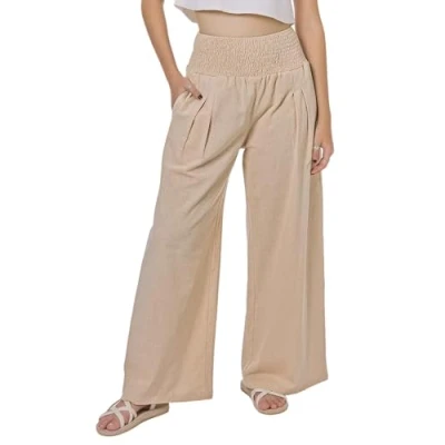 Comfortably Chic - These cute women's pants are designed for an effortlessly flattering fit. Crafted from soft, lightweight cotton and linen blend fabric to keep you comfortable all day long. Smocked waist closure provides a secure fit with a dressy look. Perfect Fit - Available in sizes S-2XL to fit most body types, petite or plus sizes. Features pleated front and loose, straight wide leg, creating a beautiful silhouette that complements your figure! Two side pockets adds convenience and style. On-Trend Style - Bring a touch of fun & femininity to your wardrobe! Wear them with your favorite tops for yoga or lounging in total comfort. Versatile Use - Exquisite casual pants suitable for any occasion: beach trips, hot summer travel vacation, maternity apparel, festivals, pajamas - it's perfect for any event that you're looking to feel laidback yet fashionable! Unique Gift Idea - An ideal hippie gift for your special someone! Handcrafted with care by artisans in Thailand. This flowy linen pant is sure to be treasured forever! Machine wash cold. Hang to dry. Do not bleach. Please refer to our size chart.