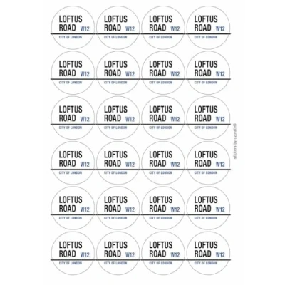Loftus Road W12 City of London Sign Circular Matt Paper Stickers A4 Sheet 24 (Each Sticker is 45mm Diameter)