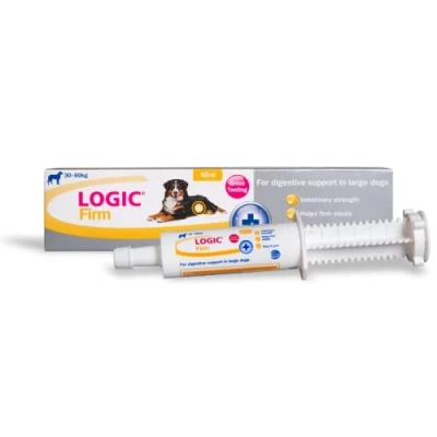 RESTORES NORMAL DIGESTIVE FUNCTION - Support proper intestinal function with our dog digestive paste. This upset tummy relief for dogs contains Montmorillonite, Na+ Mg2+ and K+ ions, dextrose, and prebiotics which help quickly restore normal digestive function and firm stools. Our digestive aid for dog diarrhea will have your pet feeling great in no time. BENEFICIAL PROBIOTICS FOR DOGS PASTE - This dog stomach settler maintains normal intestinal flora by promoting the growth of good bacteria like bifidobacterial and lactobacilli while lessening unwanted bacteria. By balancing the digestive flora, this dog stomach digestive aid is an effective dog stomach settler paste. VETERINARY-GRADE DOG STOOL FIRMER - Logic Firm Paste adheres to the highest veterinary standards. The stomach settler for dogs is safe for pets to use for their gut health. Our veterinary-grade diarrhea aid for dogs coats and protects the intestinal lining and absorbs toxins whilst helping restore the electrolytes lost during diarrhoea. EASY TO ADMINISTER PET PROBIOTICS - No need to worry about administering this dog upset stomach treatment to unruly or reluctant pets. The syringe makes it easy to get into their mouths for reliable diarrhea relief for dogs. Alternatively, you can squeeze the highly palatable dog paste on top of their food as a soothing tummy settler for dogs. DIGESTIVE AID FOR DOGS - Logic Firm dog stool hardener helps settle their stomachs and improve digestive function. The dog probiotics also give them energy and promote their general well-being for a happy, healthy doggo. Our dog probiotic is available in two other sizes, small for dogs, puppies, cats and kittens, and medium for medium-sized dogs.
